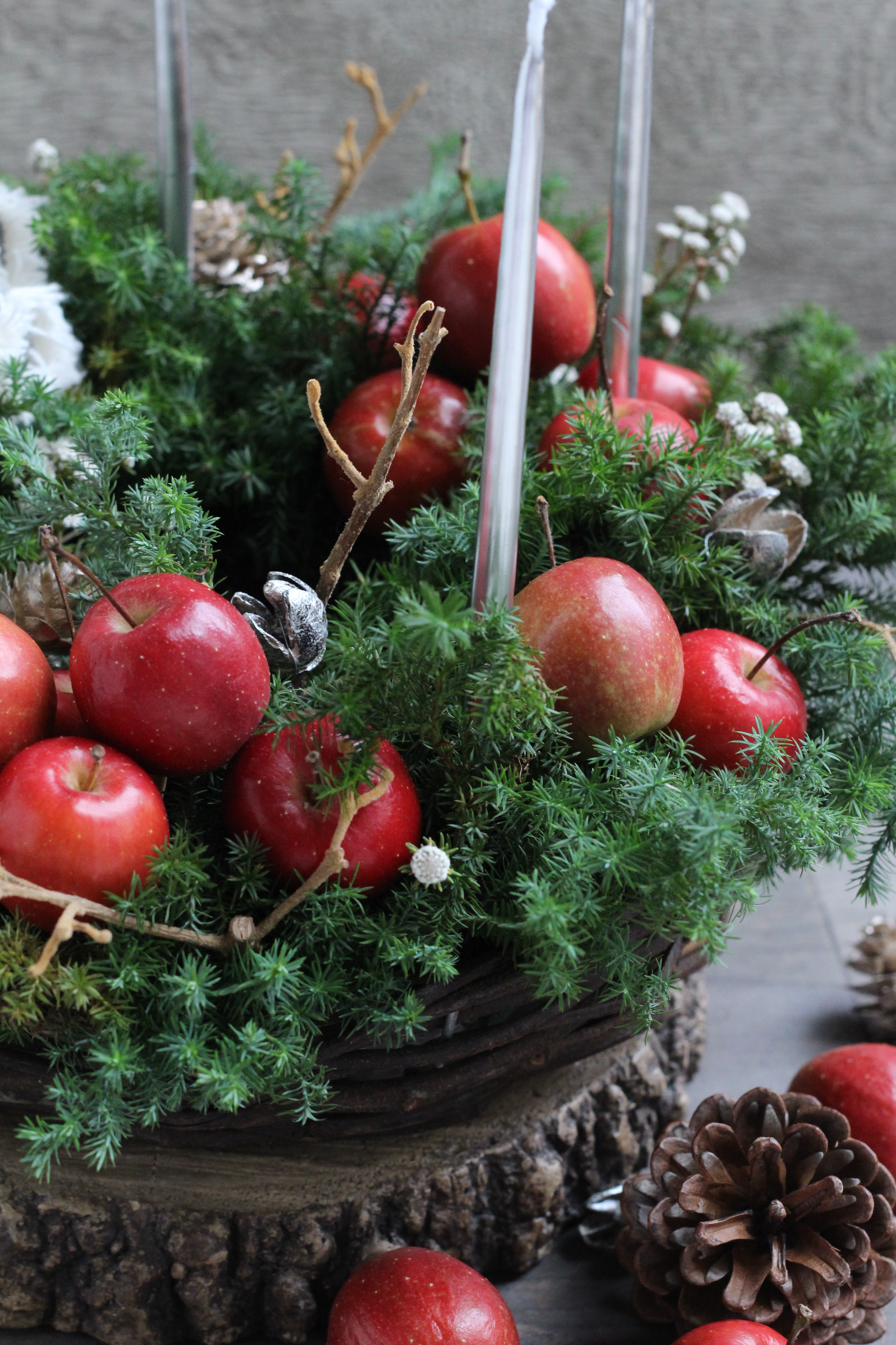 まるいちいさなひめりんごがキュートなアドベントクランツです。